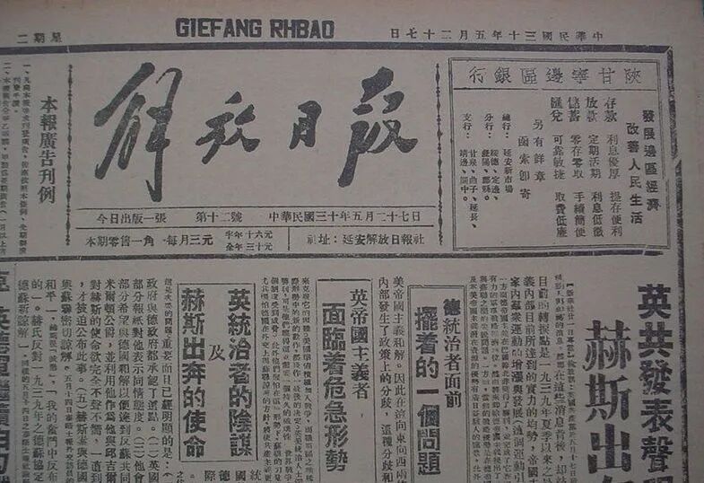 抗日战争进入相持阶段后,随着党领导的敌后抗日根据地和抗日武装力量的日益发展壮大,中共中央亟需主办一个大型日报,以加强对各地的宣传和工作指导。1941年春,中央政治局决定停办三日刊的中央机关报《新中华报》,将该刊与新华社编发的《今日新闻》合并,在延安出版大型日报《解放日报》,作为中央机关报。5月15日,毛泽东为中央书记处起草了"中央关于出版《解放日报》等问题的通知",指出:"一切党的政策,将经过《解放日报》与新华社向全国宣达,应作为党内学校内机关部队内的讨论与教育材料,并推广收报机,使各地都能接收,以广宣传,是为至要。"1941年5月16日,《解放日报》正式创刊,这是抗日民主根据地出版的第一个大型日报,毛泽东题写报名并撰写发刊词,阐明了报纸创刊的宗旨和任务,论证了党报使命与中国共产党使命的一致性,党报就是要准确地宣传党在不同时期的政治任务及为了完成政治任务而制定的路线、方针和政策,成为教育人民群众、指导革命工作的武器。初创时,《解放日报》是铅印四开两版。出版四个月后,1941年9月16日起,扩大为四版,增加反对主观主义和宗派主义的宣传教育内容;中央要求报纸的文字,应力求生动活泼,坚强有力,反对党八股;中央各部委工作同志要多给《解放日报》写文章,介绍工作经验,使之真正成为全党反映实际领导工作的机关报。1947年3月。1949年4月24日,中央决定把《解放日报》的报名交给上海,作为中共中央华东局机关报和中共上海市委机关报。上海《解放日报》于1949年5月28日创刊,现为中共上海市委机关报。《解放日报》以广大干部、工人、知识分子为主要读者对象,兼顾其他各方面的读者。在宣传报道上立足上海,兼顾上海经济区,面向全国。以上海和上海经济区各省的经济建设作为宣传重点兼及党的建设、文化、教育、科技工作以及社会生活各方面。并以较大篇幅报道全国各地的重要情况和国际新闻,反映人民的呼声重视刊登读者来信和回答读者的提问,每月来信多时达1万件。为满足广大读者的需要,办有十多种副刊、专刊。