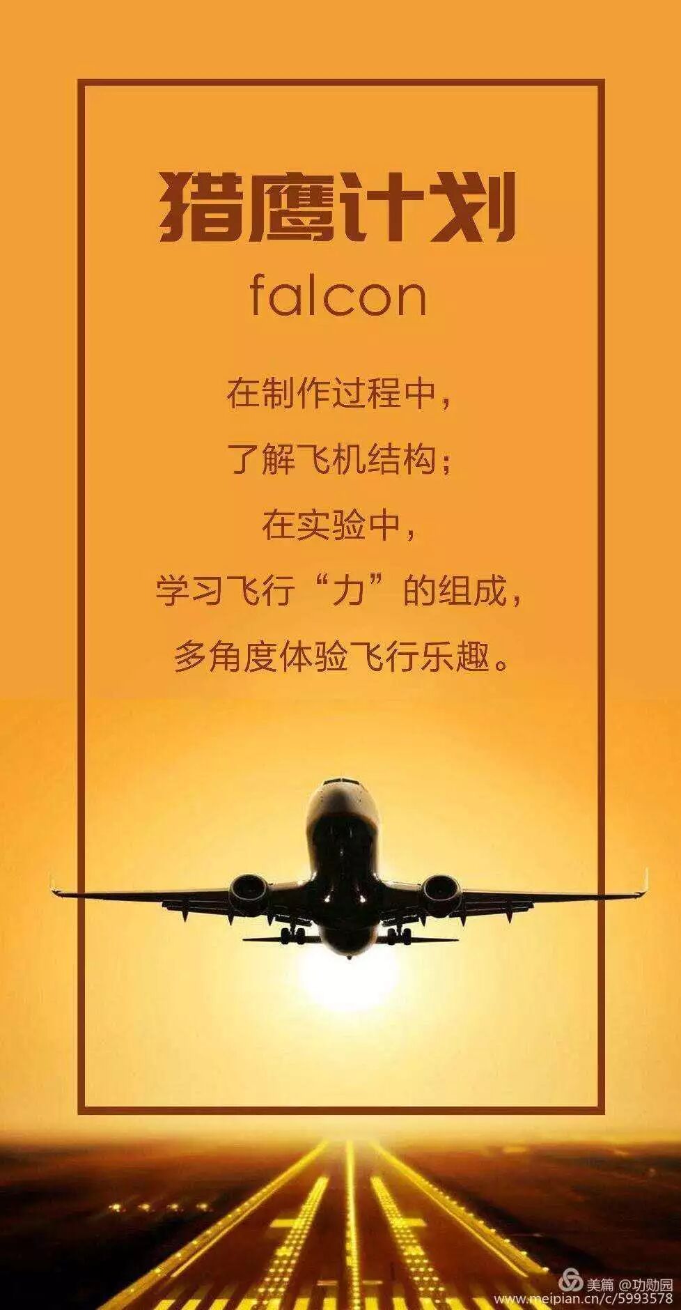 在专业航模教练的指导下了解一架飞机从设计、生产制作、调试试飞的全过程,在制作环节中学习飞机结构、飞行知识与原理,体验飞机制造过程的严谨性、专业性、趣味性。