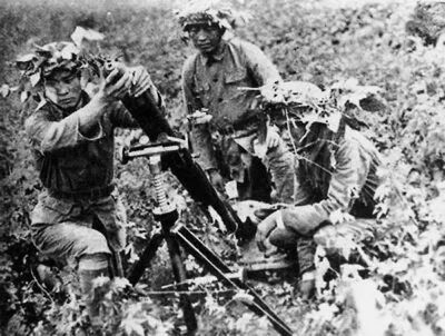▲ 抗战时期,丛林中作战的中国士兵使用82迫击炮