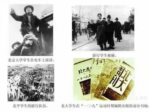 一二·九运动 又称为一二·九抗日救亡运动。1935年12月9日,北平(北京)大中学生数千人举行了抗日救国示威游行,反对华北自治,反抗日本帝国主义,要求保全中国领土的完整,掀起全国抗日救国新高潮。12月12日,北平学生举行第5次示威游行,高呼"援助绥远抗战"、" 各党派联合起来"等口号。这是中国共产党领导的一次大规模学生爱国运动。在“冀察政务委员会”计划成立的12月16日,北平学生和各界群众1万余人又举行示威游行,迫使冀察政务委员会延期成立。之后,天津学生又组成南下扩大宣传团,深入人民中间宣传抗日救国。杭州、广州、武汉、天津、南京、上海等地相继举行游行示威。北平学生的爱国行动,得到了全国学生的响应和全国人民的支持,形成了全国人民抗日民主运动的新高潮,推动了抗日民族统一战线的建立。一二·九运动公开揭露了日本帝国主义侵略中国,吞并华北的阴谋,打击了国民党政府的妥协投降政策,大大地促进了中国人民的觉醒。它配合了红军北上抗日,促进了国内和平和对日抗战。它标志着中国人民抗日民主运动新高潮的来到。正如毛泽东同志所指出的,一二·九运动“是抗战动员的运动,是准备思想和干部的运动,是动员全民族的运动”,“有着重大的历史意义”。“九一八”事变之后,日本帝国主义加紧侵略中国。他们在东北地区推行殖民地化统治的同时,利用南京国民政府的不抵抗主义,把侵略魔爪一步步伸向华北,民族危机日益严重。1935年五六月间,日本侵略者密谋策划,在天津和河北等地制造事端,并以武力相威胁,先后迫使南京国民政府接受达成了“何梅协定”和“秦土协定”,把包括平津在内的河北、察哈尔两省的大部分主权奉送给日本。之后,日本帝国主义积极策动所谓华北五省“防共自治运动”,策划成立由其直接控制的傀儡政权,全面在华北进行政治、经济、文化侵略,“华北之大,已经安放不下一张平静的书桌了”,激起北平各阶层人民的极大愤慨。当日本帝国主义的魔爪伸向华北大地之时,中国共产党人向劳动大众发出抵御侵略、保卫华北的号召。1935年,中共河北省委多次发出通知、宣言,要求华北地区各级党组织,在群众中广泛宣传,开展抗日救亡斗争,并对北平市领导机构进行改组,从政治上和组织上加强了对抗日救亡运动的领导。11月,在彭涛、周小舟、谷景生、姚依林等人的领导下,北平大中学校学生成立了“北平市学生联合会”,女一中学生郭明秋为主席,姚依林为秘书长。中共北平市工作委员会在学联建立了党团,彭涛为书记。1935年12月6日,北平学联召开代表会,通过并发表了《北平市学生联合会成立宣言》。随即,平津15所大中学校联合发出通电,反对“防共自治”,要求政府讨伐汉奸殷汝耕,动员全国人民抵抗日本的侵略。就在这天,传来了在日本侵略者逼迫下将于12月9日成立“冀察政务委员会”的消息,广大同学和各界进步人士极为震惊。12月7日,在中共北平临时工委的领导下,北平学联决定于9日举行学生大请愿,反对“华北自治”。8日,彭涛、姚依林、郭明秋、黄敬、孙敬文等人开会研究,决定由黄敬任游行队伍总指挥,姚依林、郭明秋进行队外指挥。1935年12月9日凌晨,广大爱国学生的抗日怒火像火山一样爆发。东北大学、中国大学、北平师范大学等校学生举着大旗和标语,分别朝着新华门进发。清华大学和燕京大学近千名爱国学生离城较远,到达西直门时,城门已被军警关闭,请愿队伍无法进城。两校学生就在西直门一带召开群众大会,向附近居民和守城军警进行抗日宣传。上午10时30分,北平各大中学校的爱国学生6000余人涌上街头,奔向新华门,向国民政府军政部长何应钦请愿。愤怒的学生振臂高呼:“打倒日本帝国主义!”“反对华北五省自治!”“打倒汉奸卖国贼!”“立即停止内战!”请愿群众代表向国民政府提出6项要求:(1)反对华北自治及其类似组织;(2)反对一切中日间的秘密交涉,立即公布应付目前危机的外交政策;(3)保障人民言论、集会、出版自由;(4)停止内战,立刻准备对外的自卫战争;(5)不得任意逮捕人民;(6)立即释放被捕学生。学生的游行队伍经西单和东长安街时遭到军警木棍、鞭子、水龙、大刀的攻击,百余人受伤,30多人被捕。城外清华、燕京两校学生,因城门关闭未能入城,在凛冽朔风中坚持终日,含泪向围观市民控诉日军在东北的暴行,指责国民党的不抵抗政策。第二大,北平学联决定各校学生举行总罢课,积极酝酿和准备更大规模的示威游行,抗日救亡怒潮,席卷了整个北平城。10日起,杭州、武汉、上海、广州、南京、济南、天津、青岛、南宁、长沙、厦门等地学生、教职员等纷纷集会,发表宣言、通电,举行罢课、游行,声援北平学生的爱国运动。各地爱国人士纷纷成立各界救国会,要求国民党当局停止内战,实现抗日。北平学生的爱国斗争,打击了日本帝国主义的嚣张气焰,揭露了国民党当局的卖国行径,得到了各界爱国人士的支持响应,促进了抗日救亡运动的开展。12月18日全天,北京大学、清华大学等6所大学的校长,联名要求释放被捕学生。同日,中华全国总工会向全国工人紧急呼吁援助学生救国运动,各地工人纷纷举行罢工,支持学生斗争。20日,共青团中央发表宣言,号召青年学生深入到工农群众中扩大抗日救国运动。各地社团组织纷纷发表通电和宣言,声援北平学生爱国运动。宋庆