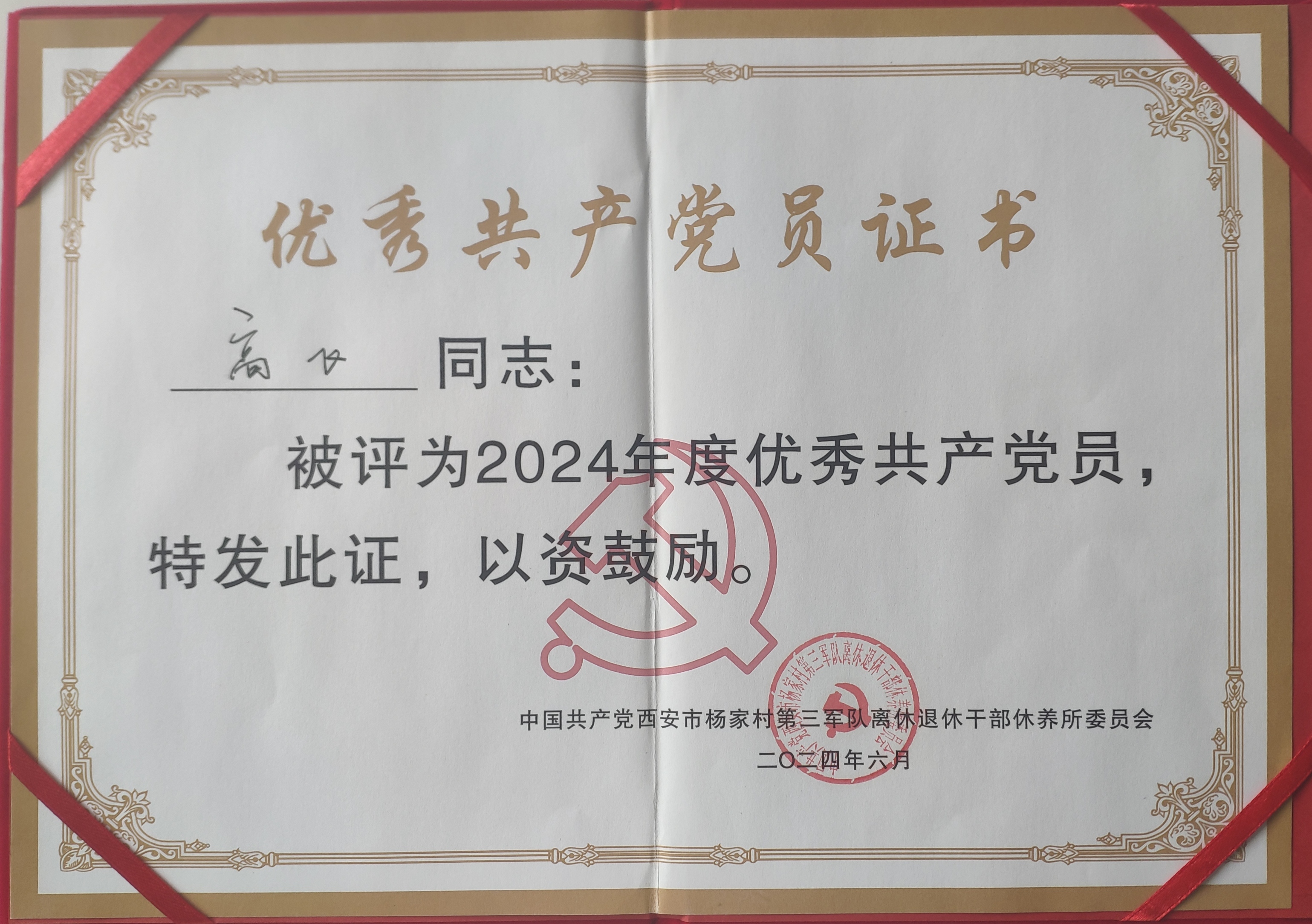 又讯,在2024年杨家村第三军休所“七一”总结表彰大会上,高飞同志被评为优秀共产党员。