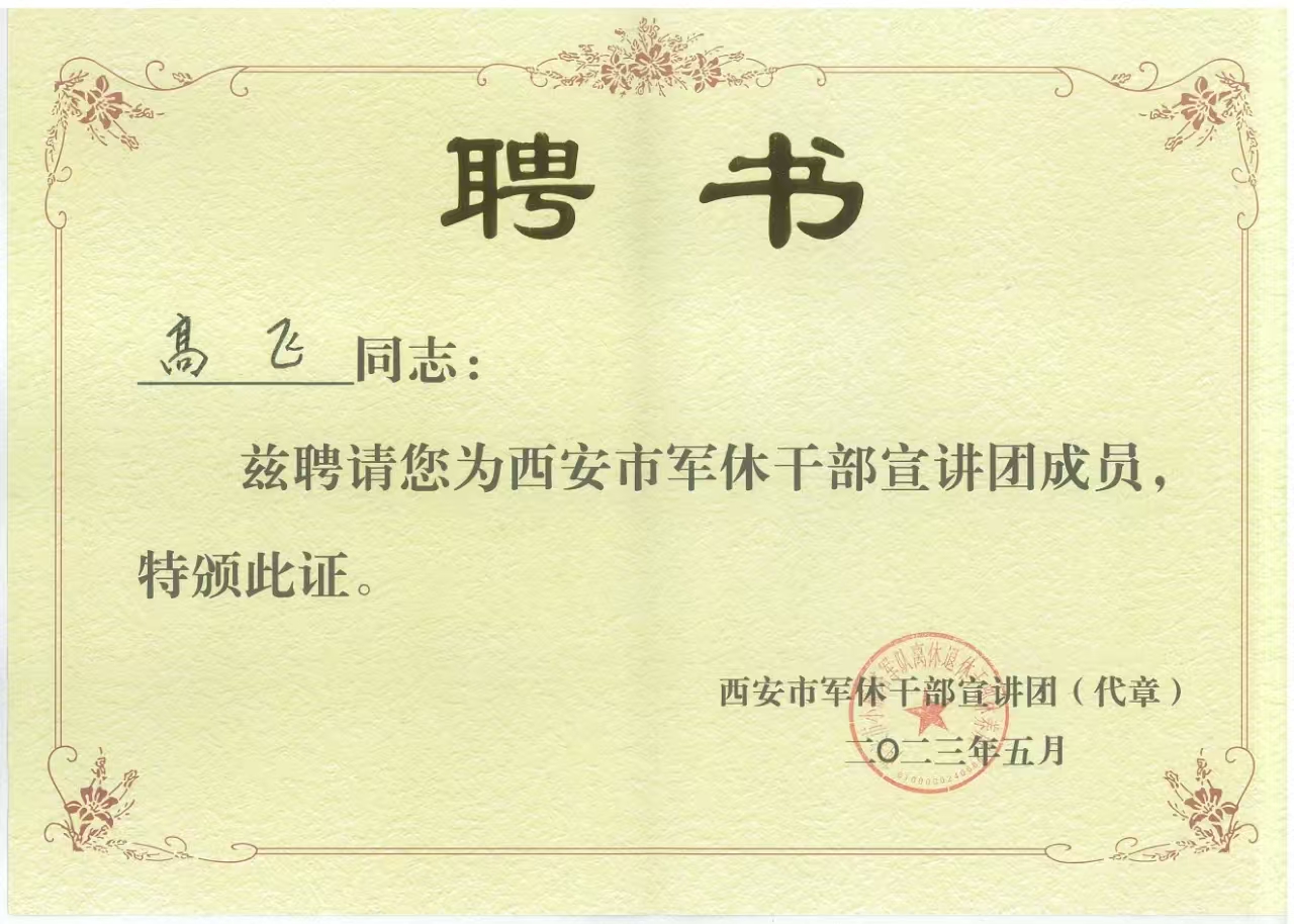 基地主任高飞同志受聘宣讲团成员,连续两年被评为先进个人。