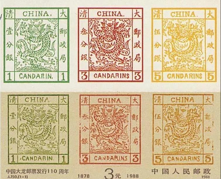 1878年8月15日,我国第一套邮票发行——大龙邮票。这套邮票共3枚,主图是清皇室的象征——蟠龙。大龙邮票的发行标志着我国创办近代邮政的发端,标志着有数千年邮驿通信历史的中国进入了采用现代通信方式的新时期。