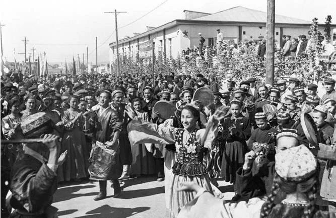 1955年10月1日,乌鲁木齐各族各界6万多人在人民广场隆重集会,庆祝中华人民共和国成立6周年和新疆维吾尔自治区成立。