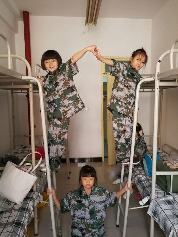 完成教官的口令时,孩子们个个都认真得“萌”态百出。