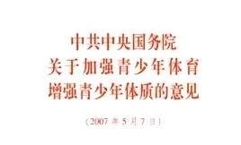 2007年5月7日,中共中央、国务院发出《关于加强青少年体育增强青少年体质的意见》,意见指出广大青少年身心健康、体魄强健、意志坚强、充满活力,是一个民族旺盛生命力的体现,是社会文明进步的标志,是国家综合实力的重要方面。