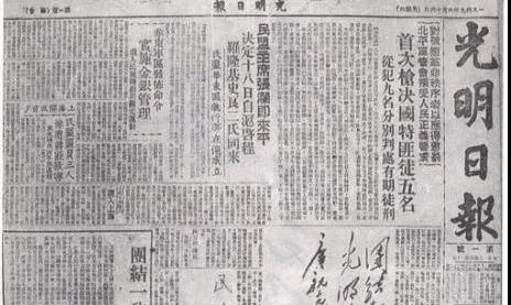 1949年6月16日,中国民主同盟的机关报--《光明日报》在北京创刊。毛泽东题词:“团结起来,光明在望”。章伯钧任社长,胡愈之任总编。创刊背景是我国经过了30年的解放运动,特别是3年的解放战争,推翻了国民党的统治,打垮了帝国主义侵略势力,取得了震撼全世界的中国人民民主革命胜利。在建国的前夕,《光明日报》诞生了。