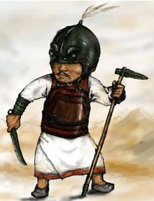 商代武士衣、裳、舄是根据广汉商代祭祀坑出土青铜像和石边璋线刻人像复原,胄采用江西薪干县商墓出土实物,参考安阳殷墟遗址遗迹。