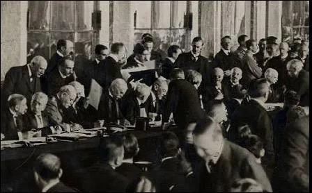1919年6月28日,举行对德和约签字仪式。6月28日晨,驻法公使胡惟德将中国这一声明带至和会磋商,该会秘书长以函稿送还,仍完全拒绝。中国代表团随即“公同决定,不往签字”。