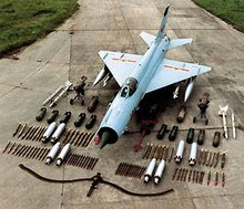 机身下1个外挂点,可挂480升或760升副油箱、组合式炸弹挂架、导航吊舱、瞄准吊舱、侦察吊舱、电子对抗吊舱等。机翼下共有4个外挂点,使用PF-5/8D挂架,可挂近距红外制导空对空导弹,包括PL-5B/C/E、PL-7A/B、PL-8、PL-9/9C,火箭发射器包括57mmHF-7B/C型、90mmHF-16A型、130mmHF-14型,航弹有50-500千克低阻常规航弹、反跑道航弹、反坦克子母航弹。机翼外侧挂架除上述武器外,还可外挂480升副油箱。