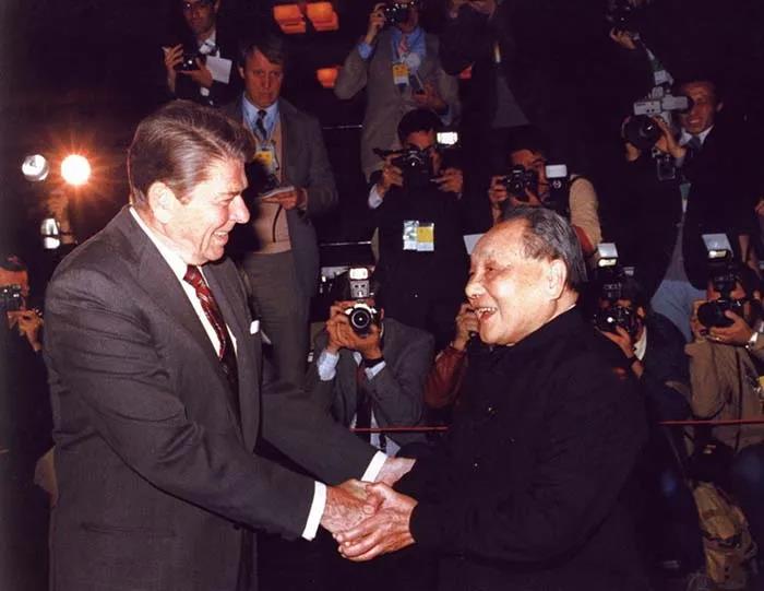 1984年4月28日,当时任中顾委主任的邓小平会见来访的美国总统罗纳德·里根和夫人。邓小平对里根说:“我期待同阁下见面已两年了。我们当面就一些问题交换意见是有益的。”里根对此表示完全赞同。