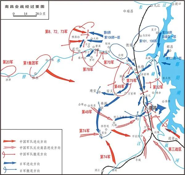 为此,蒋介石还特意电告薛岳,要求九战区为确保南昌及其后方联络线安全,要先发制敌,转取攻势,以摧毁敌人的企图。