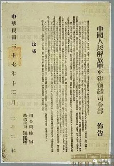 ♦ 1948年12月22日 人民解放军平津前线司令部发布约法八章
