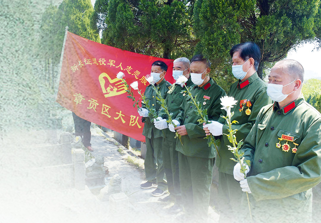 清明节前夕,李健与战友来到赣州市黄龙公墓区祭奠烈士。钟蕴斌摄