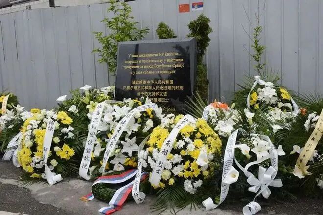 5月12日以降半旗这种最庄重、最高的规格向在北约中国下半旗哀悼牺牲烈士轰炸中死难的三位中国新闻工作者致哀。今晨五时零三分,当初升的朝阳从东方的地平线上升起的时候,北京天安门广场上的五星红旗在国歌的伴奏声中徐徐升起,二分零七秒后升到旗杆顶部。随后,天安门武警国旗护卫队指挥官一声令下,升旗手按动电纽,中华人民共和国国旗开始缓缓地从旗杆顶部下降,停在距离杆顶为旗杆全长三分之一处。