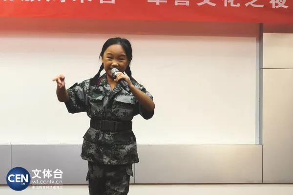 雄鹰劲旅军事拓展基地主任高飞慷慨激昂的致辞,他说:今天是雄鹰劲旅周末特训营开营的日子,全民国防教育日和“九一八”事变87周年纪念日也即将到来,期待丰富多彩的国防教育进校园活动,能提高孩子们的国防意识,同时也希望全社会行动起来,传承红色基因、汇聚强军力量。随后,文艺节目演出正式开始。歌唱家高美美、马建美助阵本次军营文化之夜演出,倾情演唱红歌《东方红》、《山丹丹开花红艳艳》、《当红军的哥哥回来了》等歌曲;著名青年表演艺术家黄河老师携两位入室弟子曹心茹、彭敬尧为在场观众带来精彩戏剧表演,引来阵阵掌声;三名教官进行了特种兵技能展示,小营员们热血沸腾,高喊:“太厉害了,再来一个动作。”看到了专业演员和教官的精彩表演,小营员们也不示弱,他们拿出自己的看家本领,上台表演了街舞、朗诵、琵琶演奏、刀术表演、小提琴表演等精彩节目,领导嘉宾和家长们都为他们竖起了大拇指。节目精彩纷呈,营员们意犹未尽,在所有节目的最后,所有参训小营员们表演了《闪闪的红星》,这次军营文化之夜到此结束。